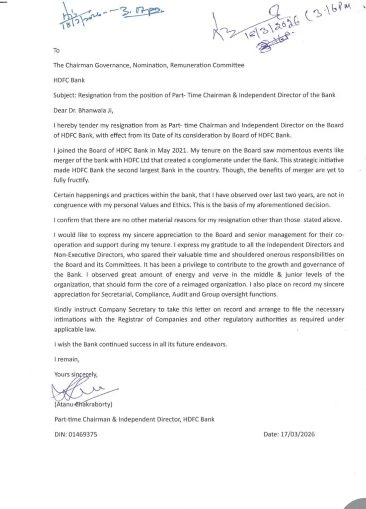 This letter has raised a lot of questions over HDFC Bank. Is something unethical going on in HDFC Bank? Atanu Chakraborty said – Certain happenings and practices within the bank, that I have observed over last two years, are not in congruence with my personal Values and Ethics. This is the basis of my aforementioned decision.